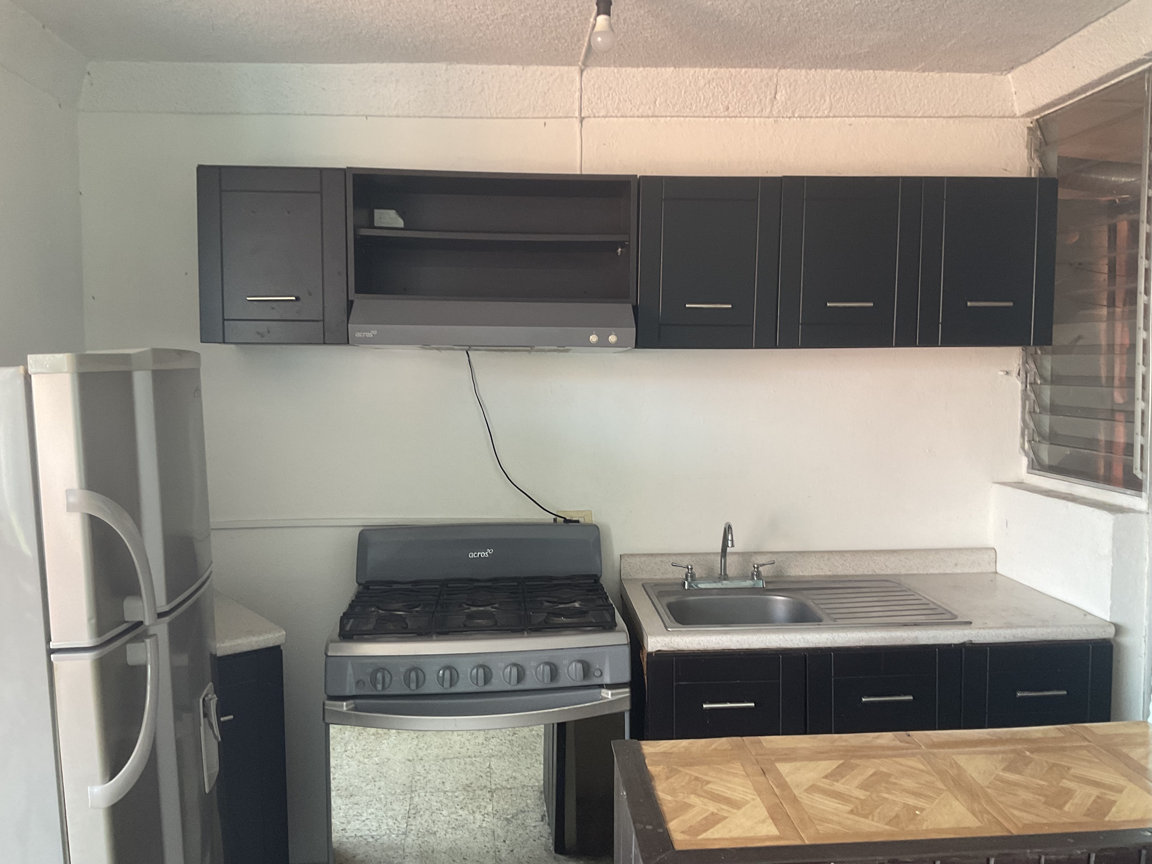 - Cocina integral con estufa, refrigerador, licuadora.